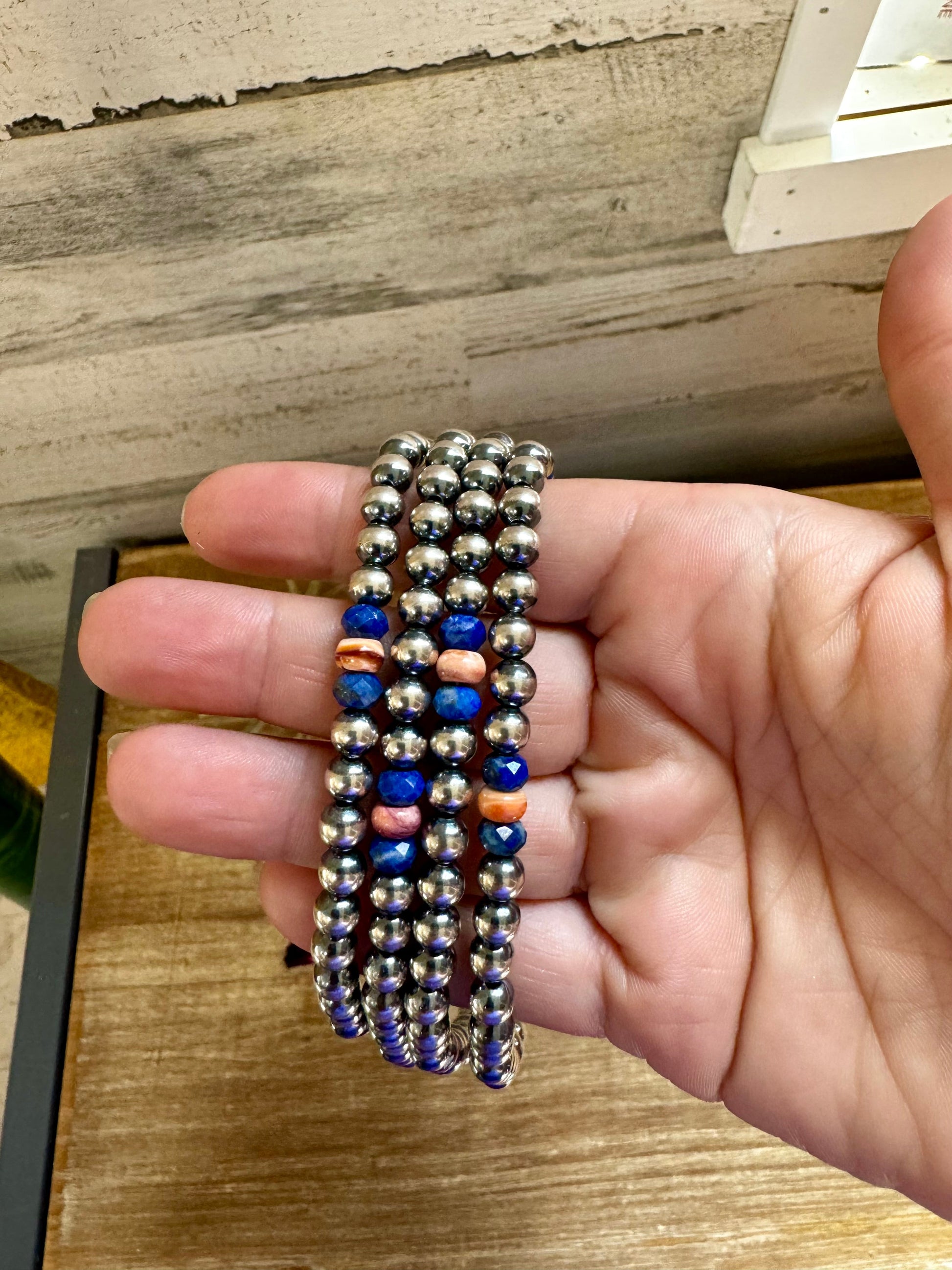18 inch 6 mm Sterling Silver Pearls necklace lapis and spiny