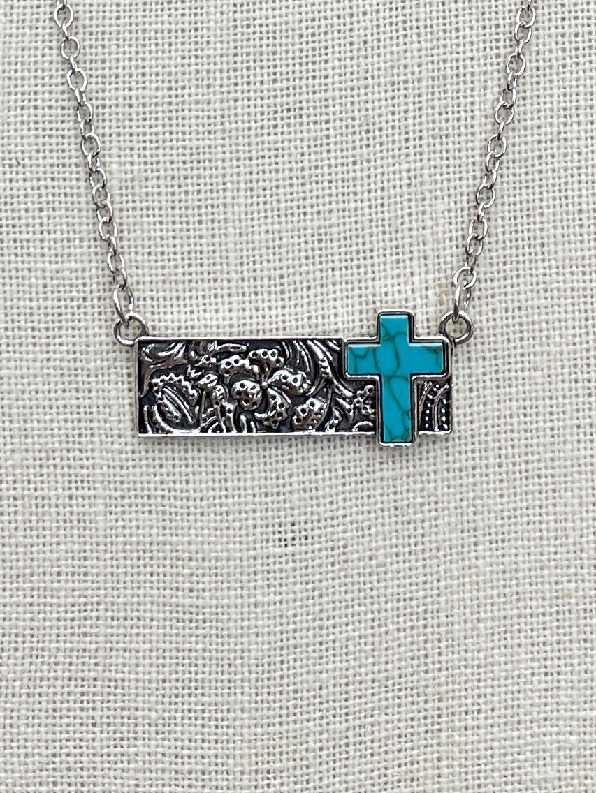 Bar Necklace with Faux Turquoise Cross