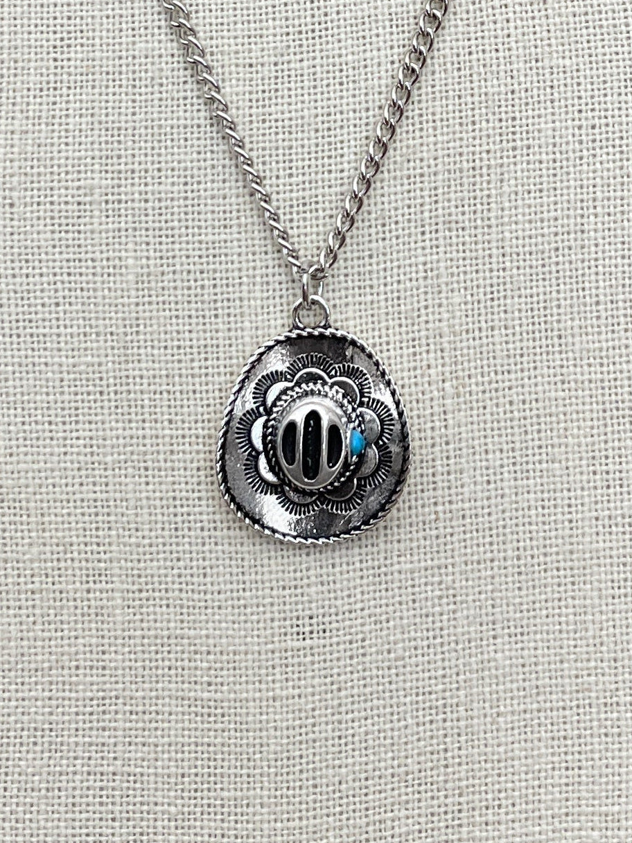 Detailed Cowboy Hat Necklace with Faux Turquoise