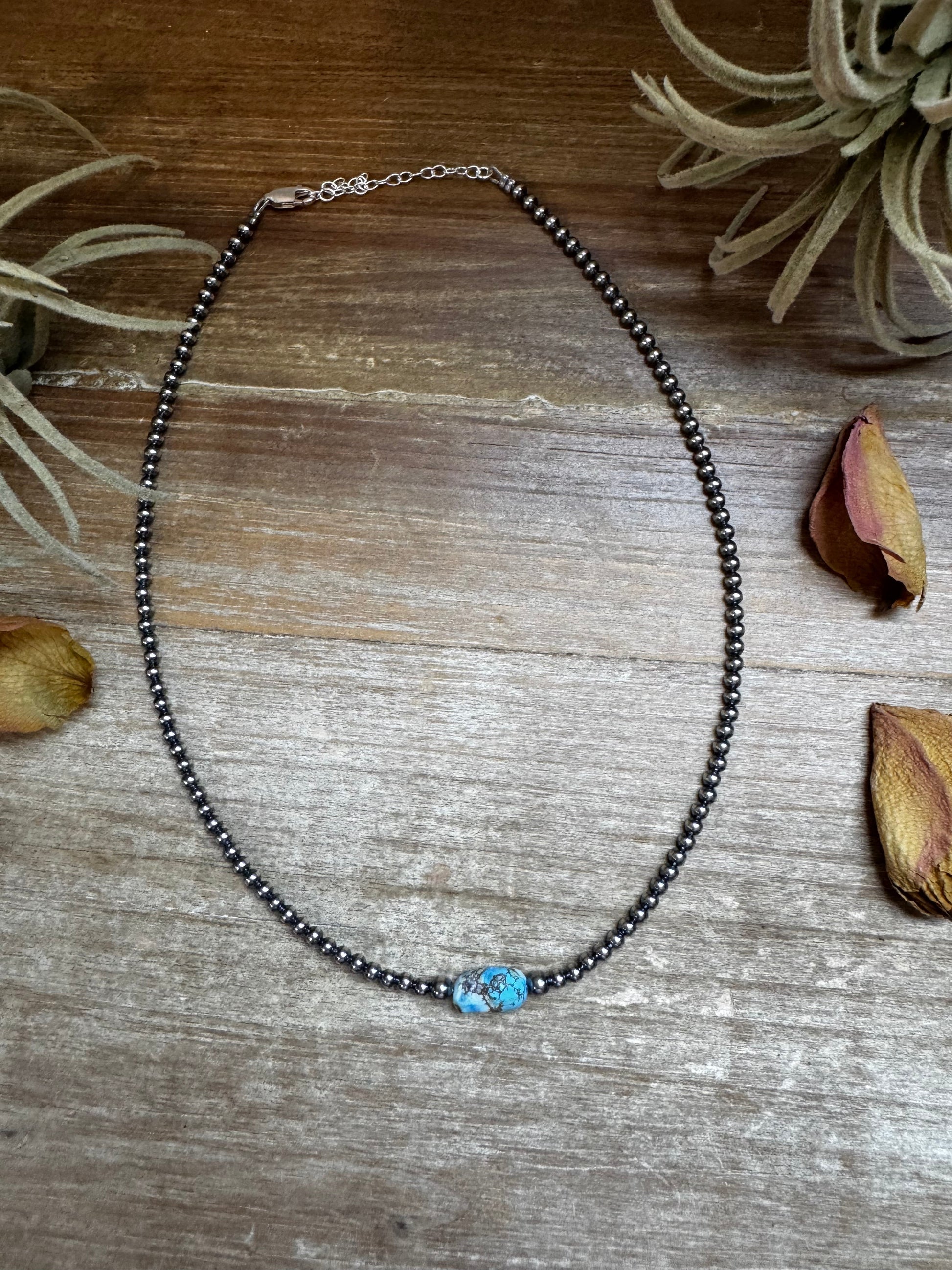 Golden Hill Turquoise Choker – Sterling Silver Pearls