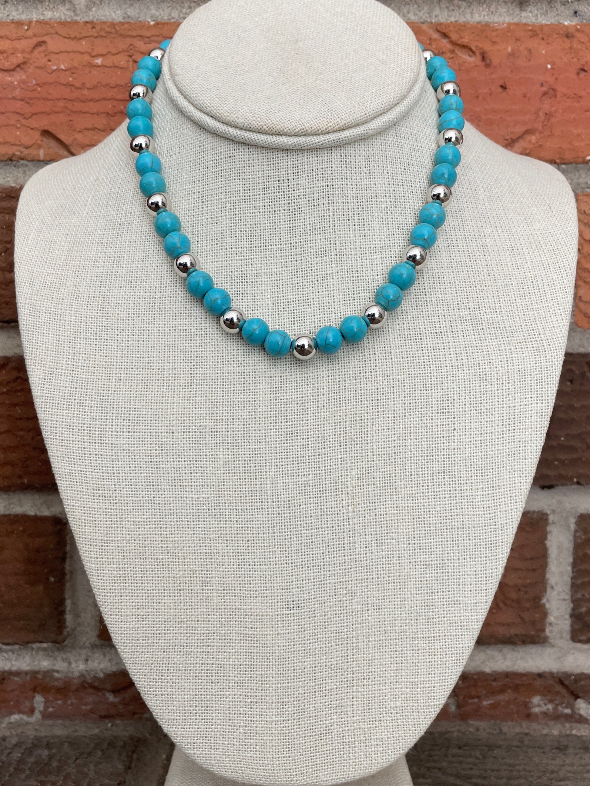 Saguaro Cactus & Turquoise Pendant Necklace Set with Faux Leather