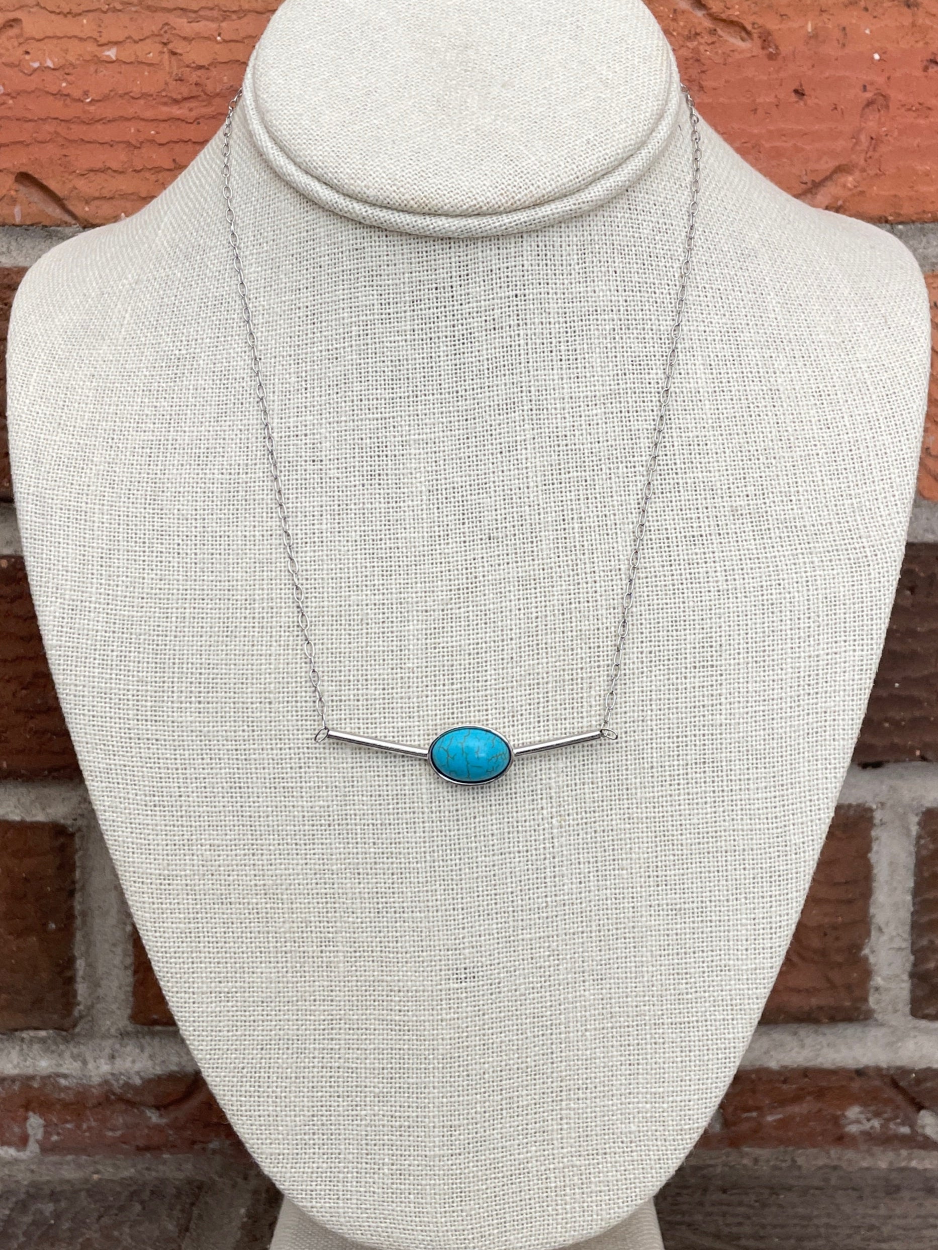 Stainless Steel Bar Necklace with Turquoise - Silver